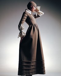 Stitched wool mix dress by John Bates at Jean VaronPhotograph by Barry Lategan, Vogue August 1971. Copyright The Conde Nast Publications Ltd...